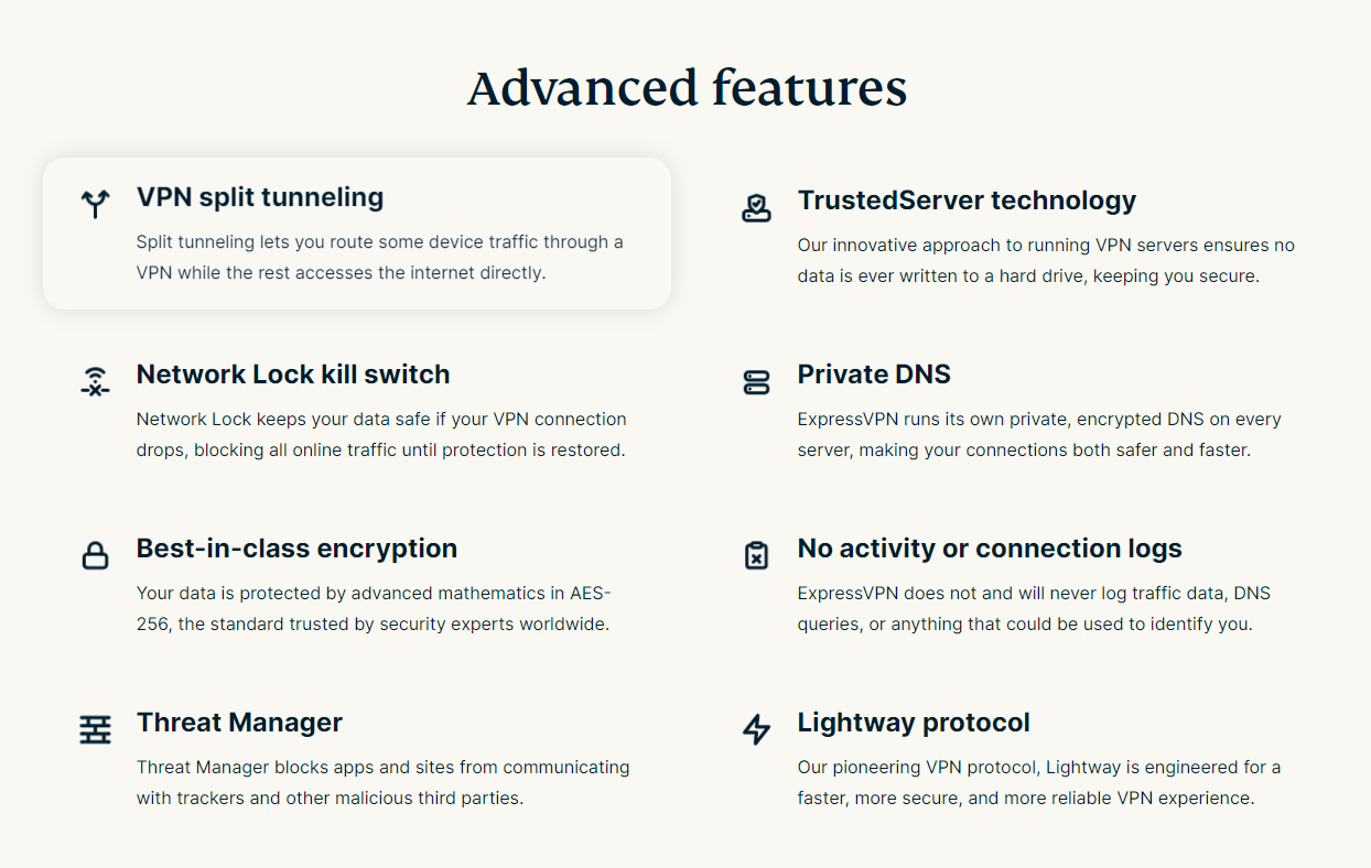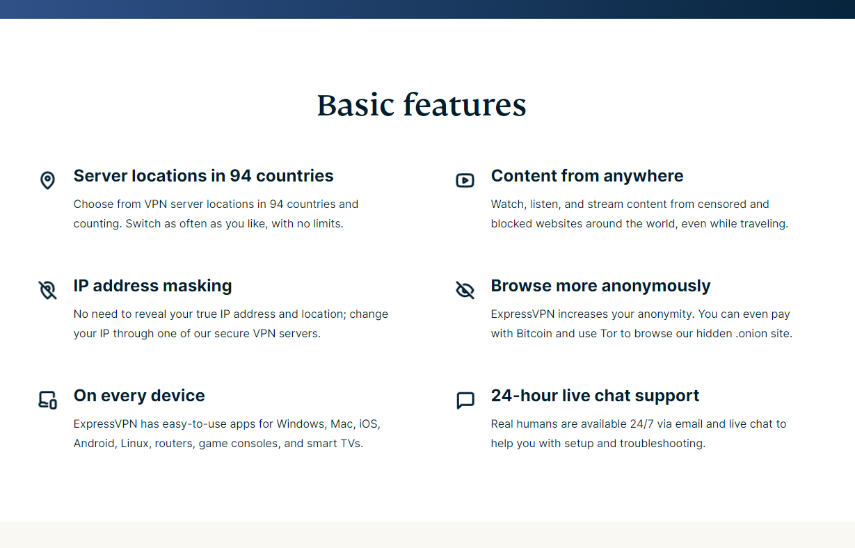 ExpressVPN innehåll och funktioner