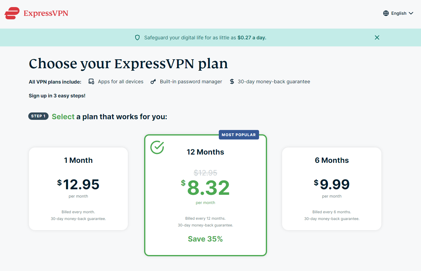 ExpressVPN har 3 prisplaner