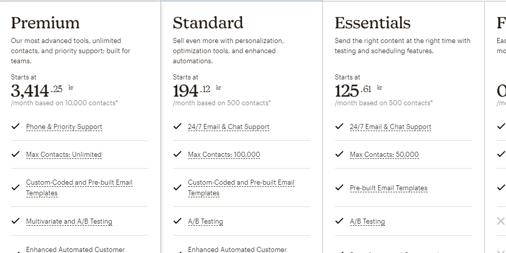 Mailchimp har 4 prisplaner för sin email marketing-plattform