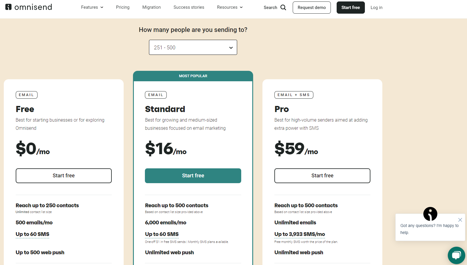 Har Omnisend de mest efterfrågade funktionerna och stöden i kategorin?