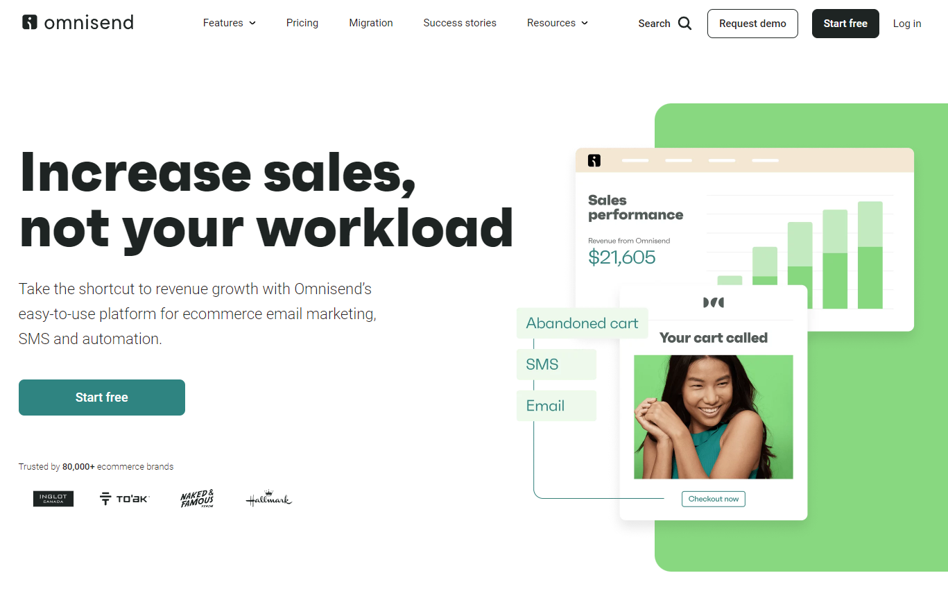 Omnisend är en marknadsföringsplattform som är byggd för att automatisera marknadsföringen på flera olika sätt: SMS, e-mail, push-meddelanden, Whatsapp, popup-fönster mm.